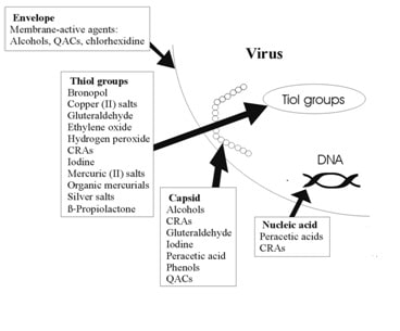 Action of biocides against viruses. (Araújo P. et al. 2011)